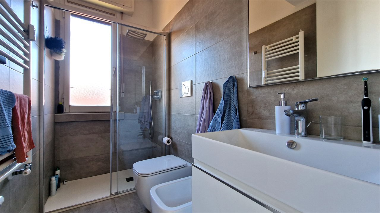 L'appartamento, posto al quinto piano con ascensore, è stato oggetto di una completa ristrutturazione nel 2022 e si presenta in condizioni impeccabili. La distribuzione degli spazi è funzionale e razionale: