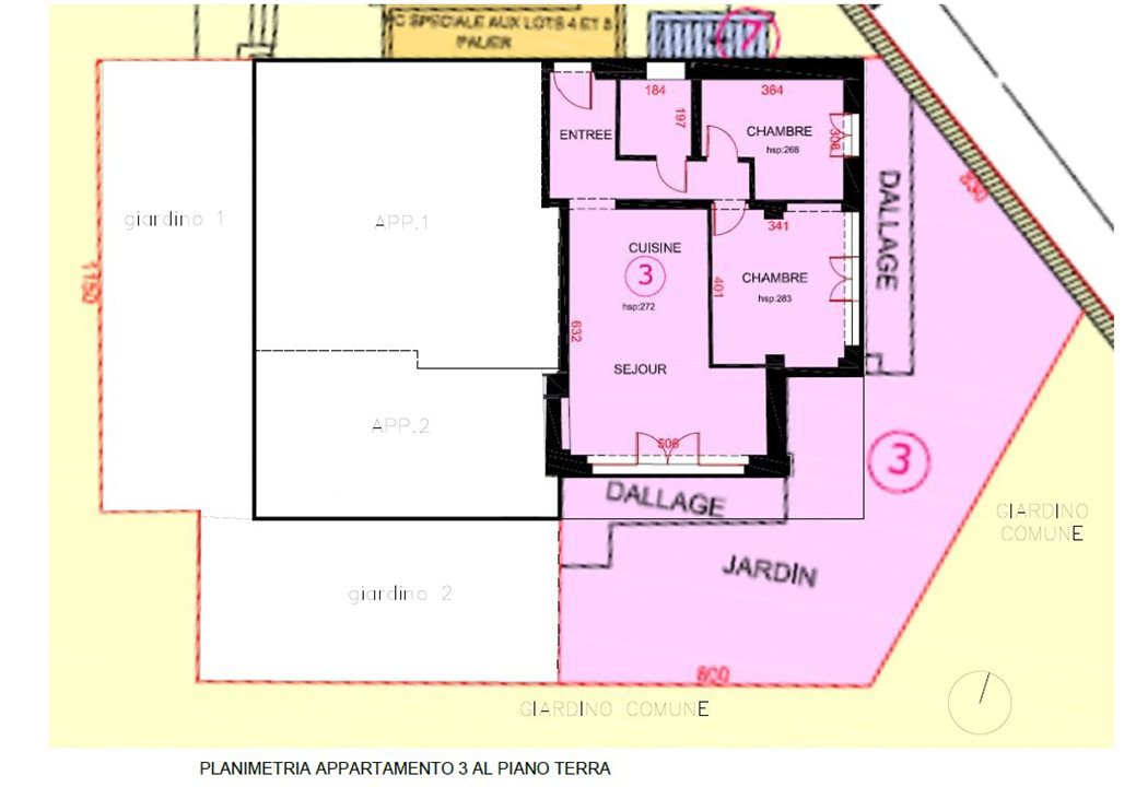lastricato (18,04mq) antistante al giardino di proprietà di 76,45mq