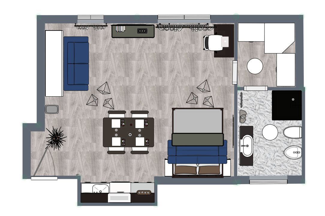 Splendido monolocale di 45 mq, perfetto per single, coppie o come investimento. Situato al piano terra con accesso diretto dal cortile, ideale per chi cerca praticità e indipendenza, e al piano S1 tramite scale condominiali. L'appartamento è composto da: