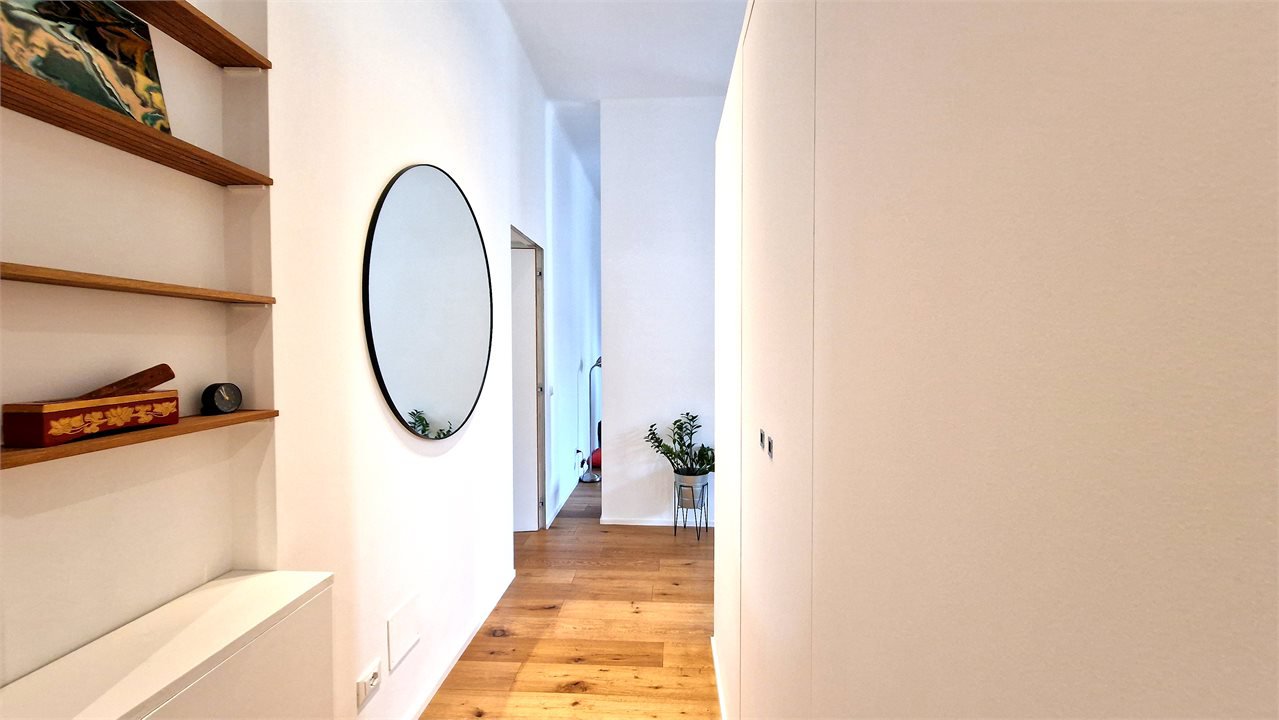 Квартира состоит из прихожей, большой гостиной с открытой кухней, спальни с двуспальной кроватью и ванной комнаты с окном. Благодаря внутренней ориентации, квартира очень светлая и отличается абсолютной тишиной.
